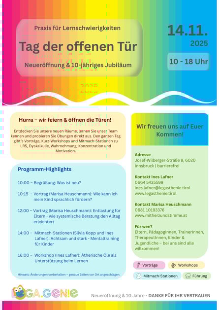 Ort: Praxis für Lernschwierigkeiten, Josef-Wilberger-Straße 9, 6020 Innsbruck